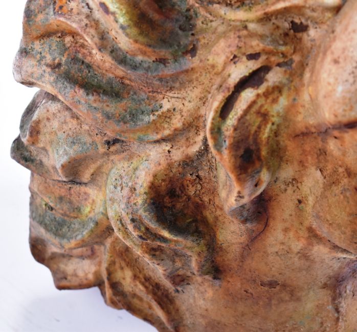 A large 19th Century Victorian heavy cast iron garden ornament in the form of a horses head having detailed features throughout. Wear commensurate with age. Measures approx; 58cm tall.