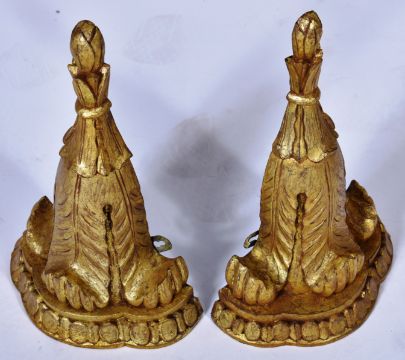 A decorative pair of late 19th Century Victorian gilt and carved wood wall mounted brackets with each having acanthus leaf detailing throughout. No signs of visible damage. Each measures approx; 39cm tall.