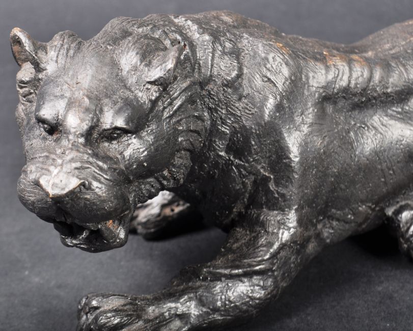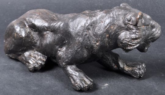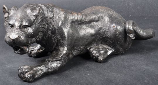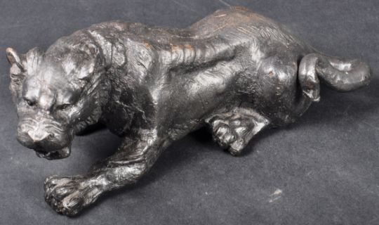 A 20th Century spelter bronze / bronzed metal figurine depicting a panther of other wild cat. The figure modelled in a reclined position with detailed features. Measures approx; 27cm long.
