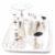 An early 20th Century George V miniature silver tea service. The lot to include tea pot, hot water jug, tazza dish, candlestick, sugar bowl, tray and creamer jug. The tray being engraved to the underside 22 June 1911 king George V, made and engraved by A Washe aged 65. Tray measures 7.9 x 5cm. Candlestick measures 3.5cm tall. Weight 69.6g. Unmarked, tests indicate silver.