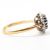 An 18ct gold, platinum sapphire and diamond cluster ring. The ring set with a central round mixed cut sapphire framed by single cut diamonds. Marked 18ct PLAT tests indicate 18ct gold and platinum. Weight 3.6g Size N.5. Central stone measures approx 7 x 7 x 4.5mm. Surrounding diamonds measure approx 1 x 1mm.