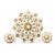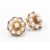An Indian yellow metal and pearl filigree earrings and brooch suite. The lot to include a round brooch with filigree detailing set throughout with pearls having a hinge pin and pendant bale to verso together with a pair of matching earrings. Unmarked but surface tests indicate 9ct gold. Brooch measures 6cm wide, 2.1cm.