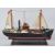 A vintage 20th century wooden model scratch built boat with brass plaque beneath to read 'Free Spirit' raised upon an ebonised plinth base.
