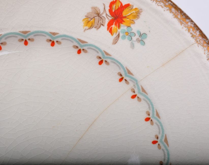 A vintage 20th century Swinnertons bone china part tea service in the Majestic Vellum pattern. Comprising of teacups saucers, side plates and a dinner plate. Crazing present.