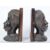 A pair of vintage 20th century carved African fruitwood bust bookends having a male and female bust to each side. Measures 19cm tall.