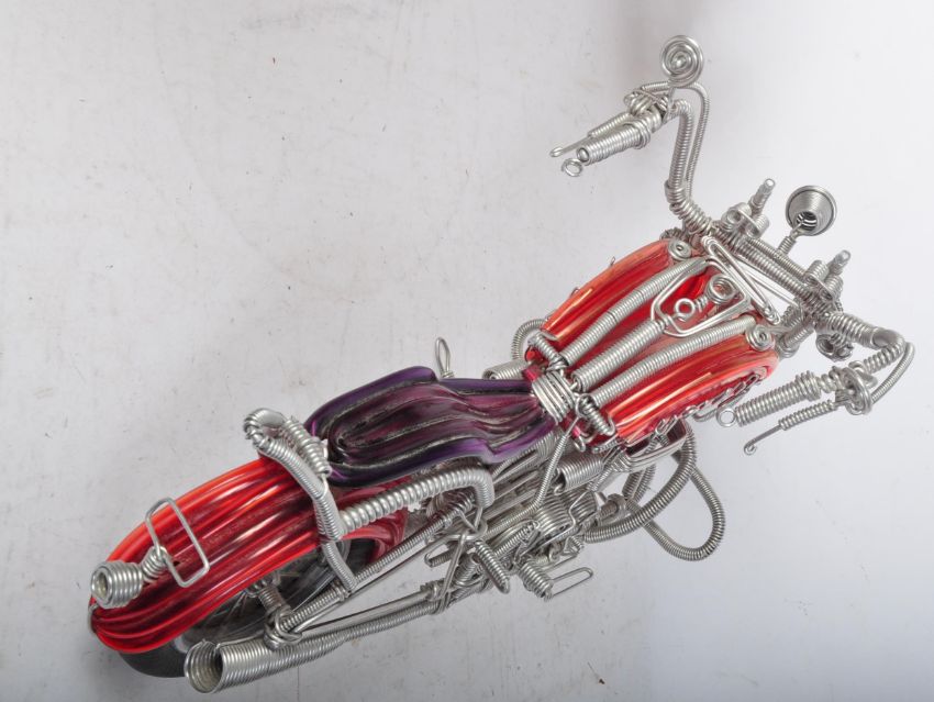 A 20th century Harley Davidson wire and tubular miniature motorcycle having a wire frame with polychrome PVC tubing. Measures 60cm long