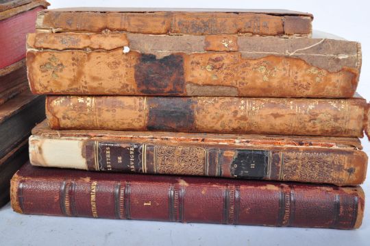 Of Antiquarian / Book collecting interest - A collection of 17th century and later French books comprising of a 1854 Itineraire de Paris a Jerusalem par m le Vicomte, Recueil Des Lettres De Madame de Sevigne 1810, Memoires D'un Pere 1805, Regne De Louis XV, Oeuvres De J Racine, Elemens D'Hippiatrique ou Nouveaux Prinicipes sur la connoissance et sur la medecine des chevaux 1750, Abrege de La Geographie, Lettres De Madame de Maintenon, Traite De S Bernard 1672, Fables De La Fontaine.
