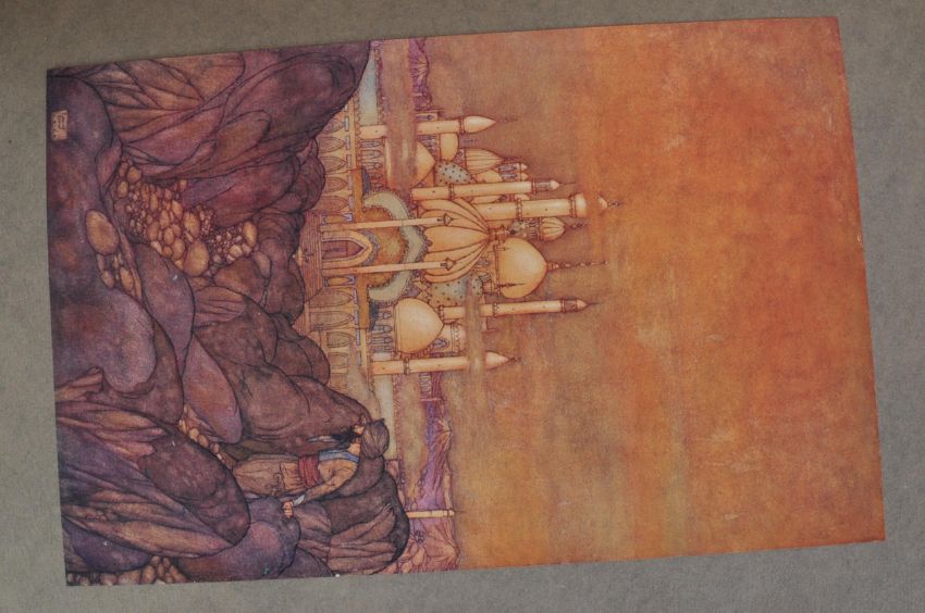 An early 20th century illustrated book by Edmund Dulac: (Illustrator) Stories from the Arabian Nights. Retold by Laurence Housman, 50 mounted colour plates, org. pictorial brick red cloth, lettered in gilt, large 4to, Hodder & Stoughton, (1907).
