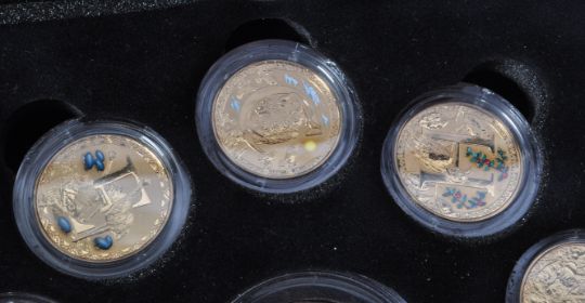 A collection of UK proof currency comprising of a Princess Charlotte coin set, Coronation Jubilee four coin set, Queens New  Portrait Specimen set. All boxed with certificate of authenticity