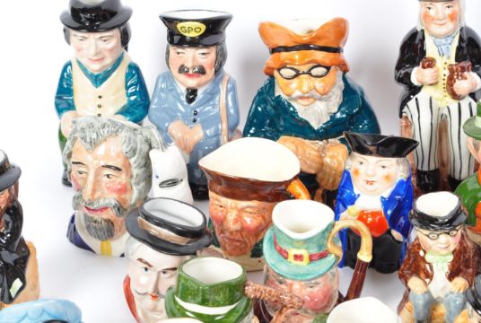 A large collection of vintage 20th century ceramic toby jugs. The lot to include makers such as Sylvac, Shorter, Wooden Sons, Artone, Leonardo, Kelsboro Ware & more. Largest measures 14cm high. Marked at the base.