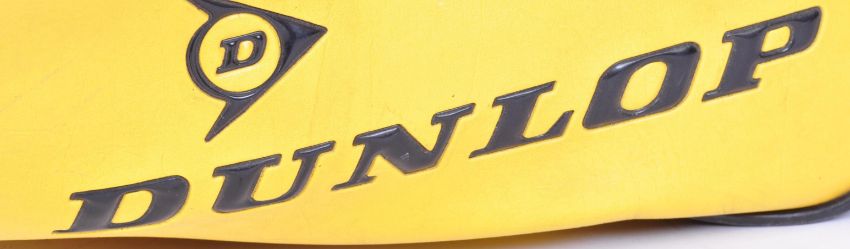 A vintage retro 20th century Dunlop yellow leather golf bag, having dual zips and handles. It measures approx. 67 x 20 x 28cm.