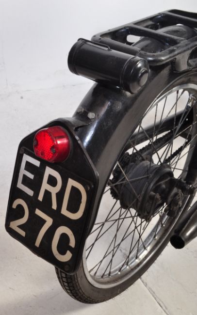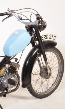 ERD 27C - a 1965 49cc Minarelli engined two-stroke Kerry Capitano Deluxe Automatic motorcycle / motorbike. 49cc two-stroke engine, with pedal start. Complete example, with all lights present, and includes the original tool kit housed in the canister to the rear. Black, with blue fuel tank. Working order - has been regularly maintained and used by its present owner. Supplied with its original owner's manual. A video of the vehicle running can be sent upon request. Viewing welcome by appointment.