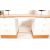 A retro vintage 20th century circa 1980s teak and white fronted dressing table having two circular mirrors, central kneehole flanked by three drawer pedestals raised on teak supports. Measures 117 x 145 x 50cm.