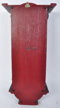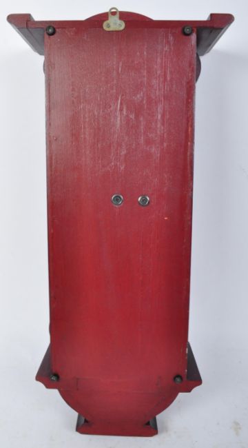 A vintage 20th Century Lincoln 31 day mahogany wall clock. Having an arched top, with a long body fronted by gilt glass border, terminating in a ball finial. With pendulum and key. Measures approx. 74cm tall.