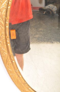 A 19th century Victorian gilt wall hanging mirror of oval form having gilt painted carved wood frame and bevelled mirror glass. Measures approx.  83cm x 55cm.