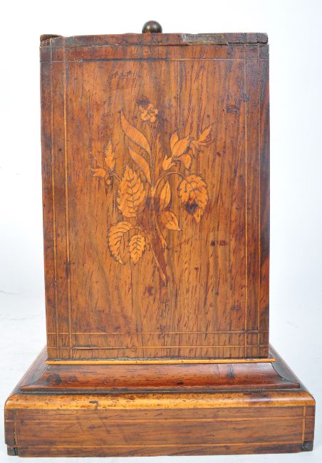 An early 20th century French Henri Marc of Paris mantel clock having inlaid floral detailing, silvered clock face with Roman numerals to the chapter ring raised on a plinth base. Measures 20cm high.