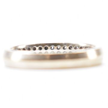 A hallmarked 18ct gold and diamond half eternity ring. The ring being set with two rows of diamond accent stones. Hallmarked London. Weight 2.8g. Size K.