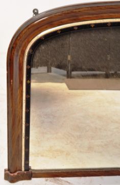A 19th century Victorian period mahogany over mantle arch top mirror. The mirror having a mahogany external frame followed by a gilt slip & an ebonised band with Pattee cross decoration. It measures approx. 65 x 103cm.