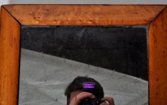 A 19th Century Victorian walnut framed hanging pier mirror of rectangular form having a good pitted mirror plate. Wear commensurate with age. Measures approx; 71cm x 37cm.