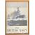 A retro vintage mid 20th Century Royal Navy printed poster. Features a pictorial of two Dreadnaught warships after artist Frank Wood. Set within teak frame. Measures approx; 74cm x 52cm.