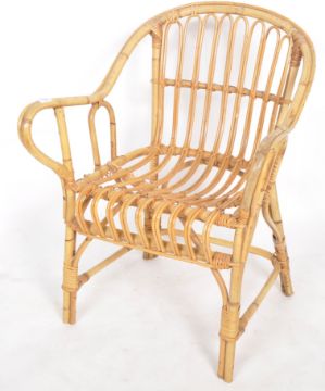 A retro vintage mid 20th Century Italian cane & bamboo side chair / accent chair in the manner of Franco Albini. The chair having shaped back with slatted rail backrest raised on cylindrical legs and supports. Measures approx; 83cm x 61cm x 51cm.