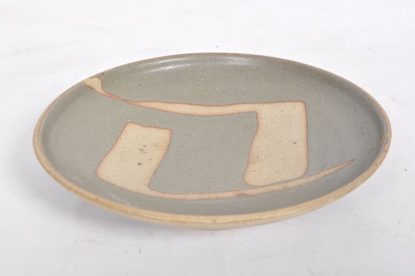 A retro vintage mid 20th Century 1960s British studio art pottery bowl. Simple form with circular edge and painted abstract pattern to top. Impressed signature to foot. Measures approx; 26cm wide.