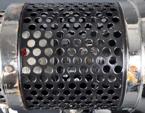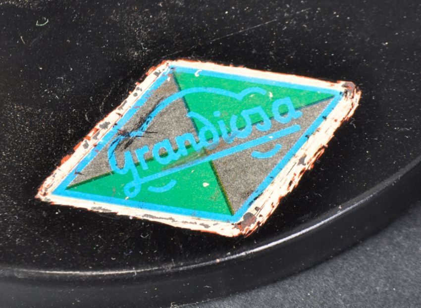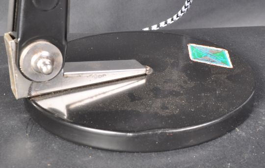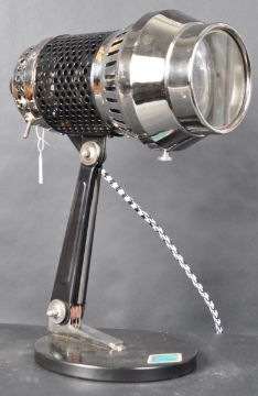 Grandiosa  - 1970s Model: 8122 Industrial Lamp light, made in Germany.  A medical heat lamp stamped on shade with switch button, shade handle in bakelite, adjustable shade position supported on a black metal articulated arm chrome bracketed to a circular stamped base. Measures approx: 38cm x 29cm x 17.5cm.