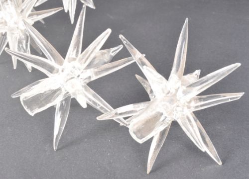 BHS - Model NW1 5QD - A contemporary chrome hanging ceiling light pendant of ball form having multiple clear glass star lights on chrome supports. Damage to some of the glass starts. British Home Stores label present. Measures approx; 35cm diameter.