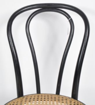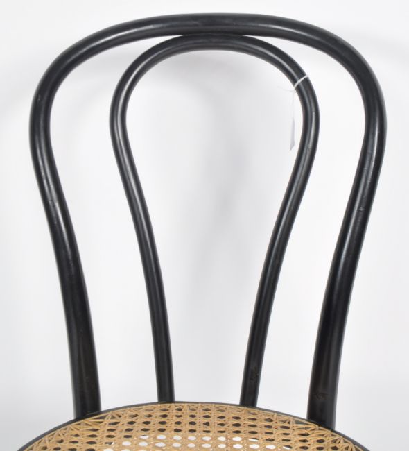 Michael Thonet - A vintage 20th Century Polish ebonised bentwood cafe / bistro dining side chair having a shaped backrests with circular rattan seat with all raised on shaped supports. Poland label to the underside. Measures approx; 87cm x 41cm diameter.