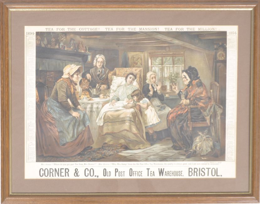 Local Bristol - A 19th Century Victorian advertising point of sale calendar / poster. Central image with calendar notation and lettering to border. Housed within frame. An early example of Bristol advertising. Measures approx; 61cm x 79cm.