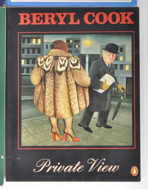 A collection of four Beryl Cook coffee table art books comprising The Works (hardback), Private View, One Man Show (hardback) and London. Each containing full colour photograph copy pages of Cooks most famous works and more obscure examples. Some wear but overall in good condition.
