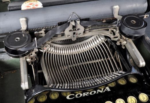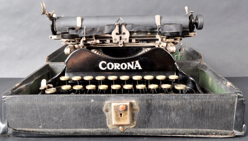 The Corona Typewriter Co. Ltd - An early 20th Century Art Deco foldover portable / travel typewriter within its original travel case. Markes marks throughout. Case measures approx; 12cm x 31cm x 25cm.