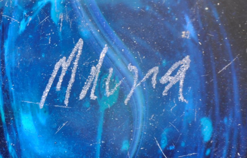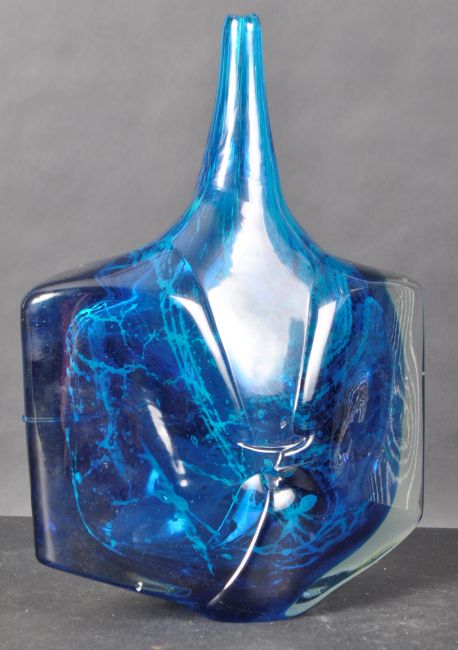 Michael Harris - Mdina - An original vintage retro 1970s Maltese studio fish or axe head art glass single stem vase having intricate mottled decoration. Signed to base. No signs of visible damage. Measures approx; 26cm x 20cm.