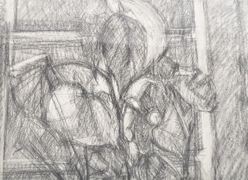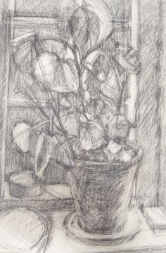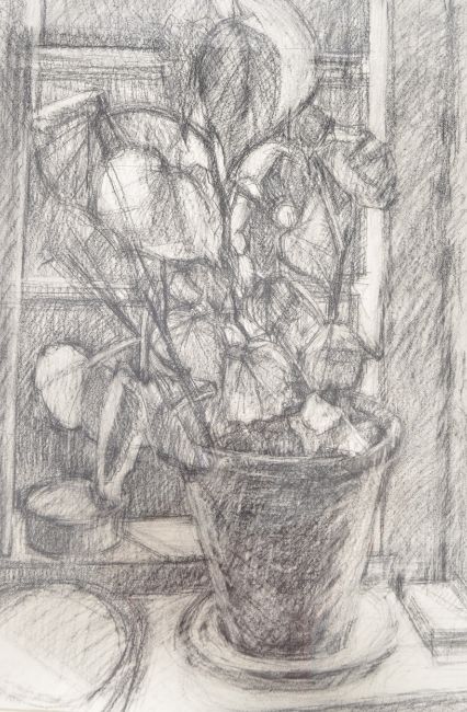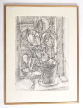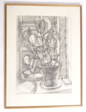 Charles Rodwell - A large late 20th century pastel still life sketch by British Artist Charles Rodwell. The picture depicting a potted planted before a window. Signed by the artist and dated 1984. Framed and glazed. Measures approx; 98cm x 74cm.