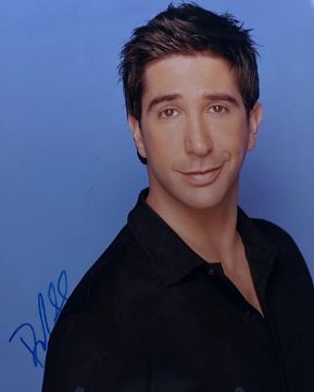 David Schwimmer - Friends - autographed 8x10" colour photograph of Schwimmer as Ross in the American sitcom. Signed neatly in blue ink to a light area. Supplied with a certificate of authenticity from an AFTAL member.