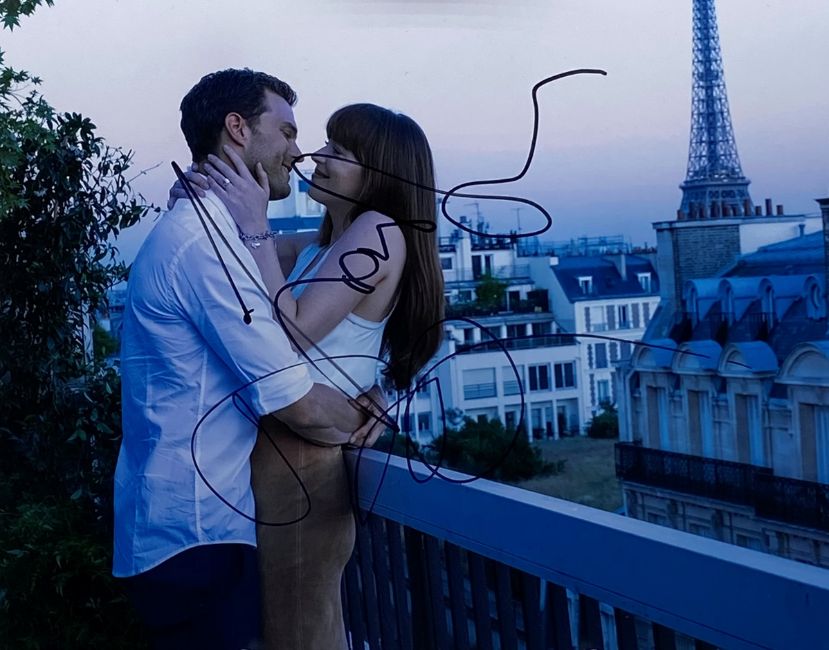 Fifty Shades Of Grey (2016) - Jamie Dornan & Dakota Johnson - dual autographed colour 8x10" photograph from the movie. Signed by both in black ink to a central portion of the image. Obtained at the UK Premiere in London. Supplied with a certificate of authenticity from an AFTAL registered dealer.