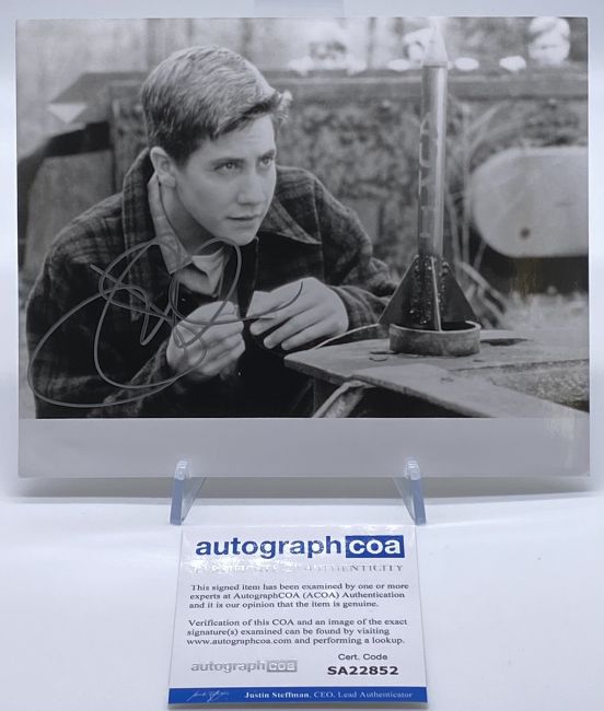 Jake Gyllenhaal - American Actor - autographed 8x10" black and white photograph, signed in silver ink to a dark portion of the image. Supplied with ACOA (AutographCOA) authentication.
