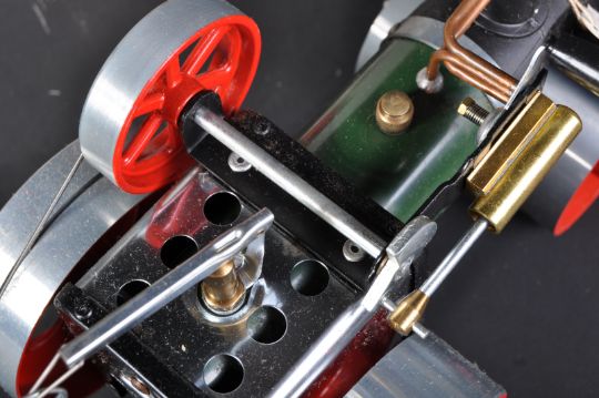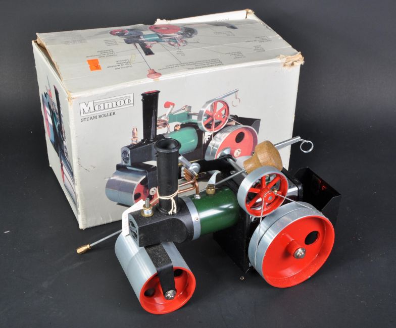 An original vintage Mamod Steam model No. SR.1A Steam Roller / Traction Engine. A green and red example. With original packaging.