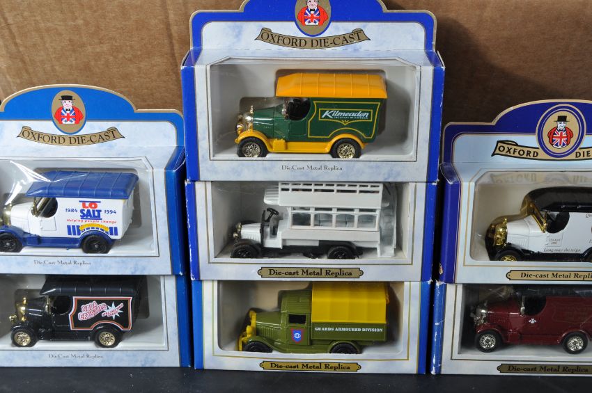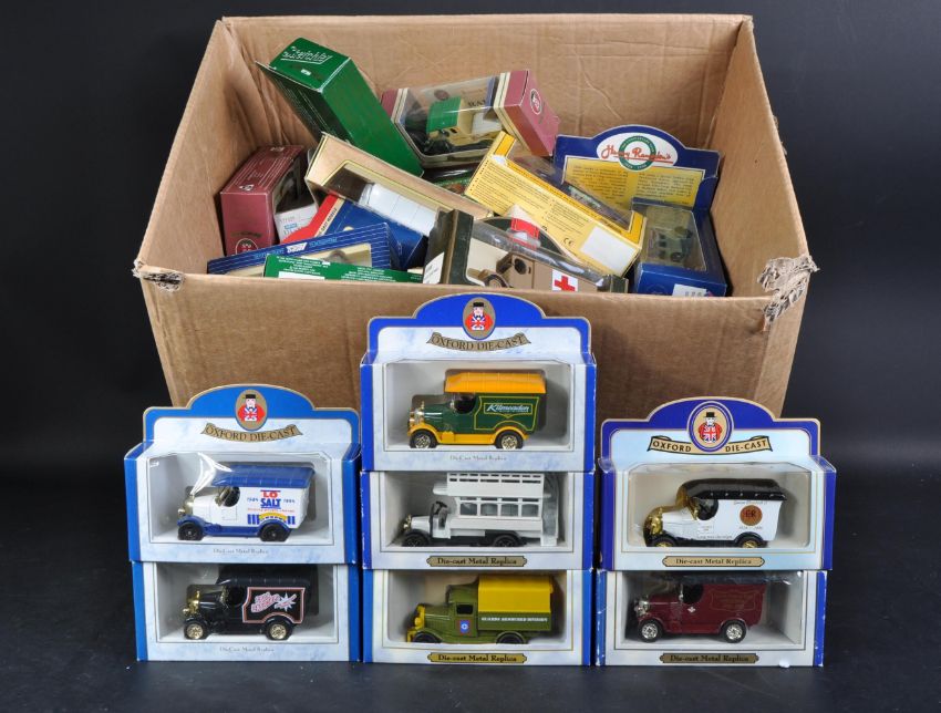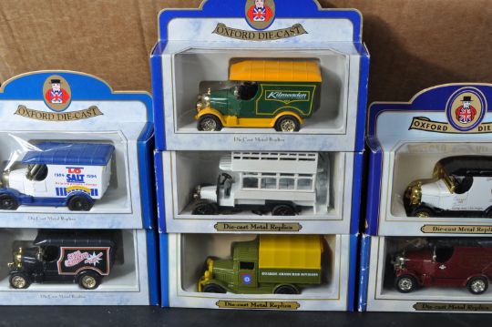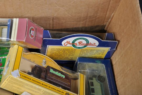 A collection of assorted Lledo ' Days Gone ' boxed diecast model cars and other vehicles. Largely advertising related with some haulage and public transport models. Some Oxford Diecast also present.