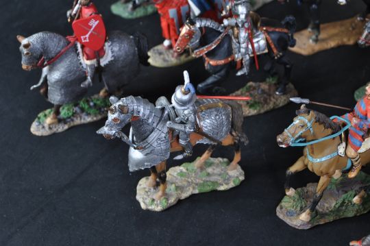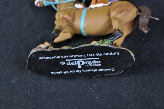 A collection of assorted Del Prado lead toy soldiers. The highly detailed horseback / cavalry soldiers of lead construction are pro-painted to depict the most famous soldiers and regiments to include; Mamluk Senior Officer 1270, Alemannic Cavalryman late 4th Century, Bishop Hermann of Tartu 1242 and others. Highly detailed figures, some loose examples may be lacking finer details.
