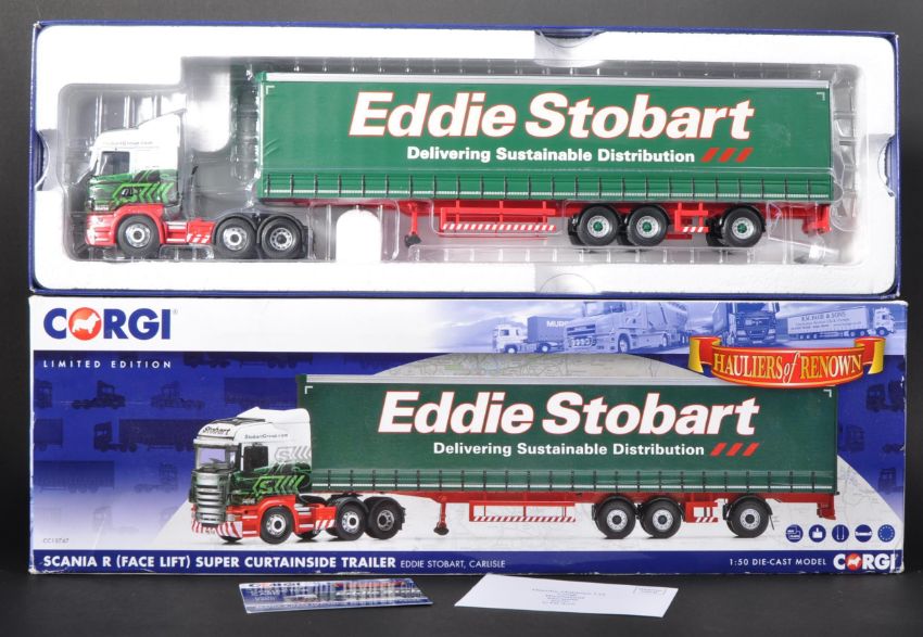 An original Corgi made ' Hauliers of Renown ' 1/50 scale boxed diecast model No. CC13747 Scania Super Curtainside Trailer Eddie Stobart. Model appearing mint with original box.