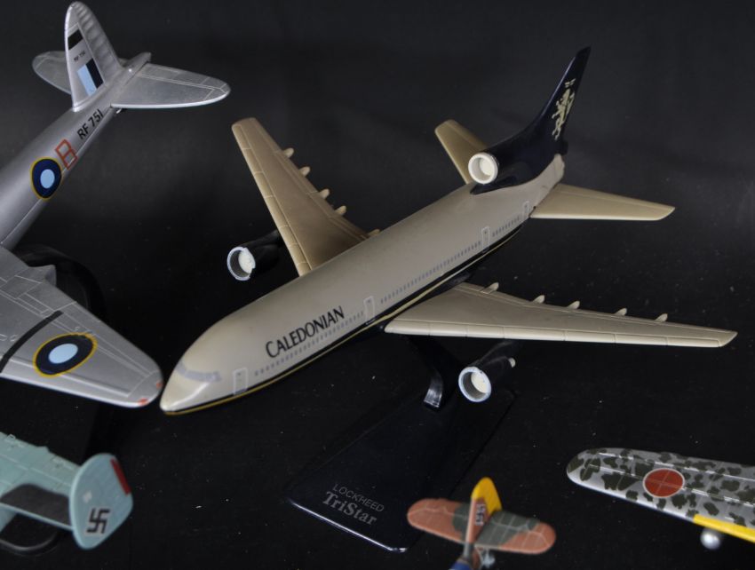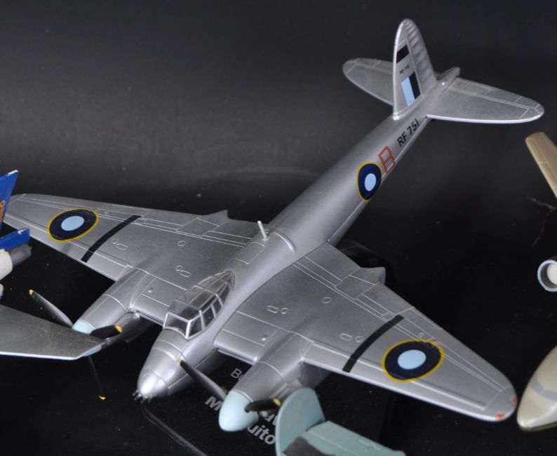 A collection of assorted Atlas Edition diecast model aeroplanes with display stands to include; Spitfire Night Fighter, USA F9F Panther, Hawker Hurricane MK IIc and others. Models appearing near mint but may be lacking smaller details. Largely loose examples with x5 boxed models present.