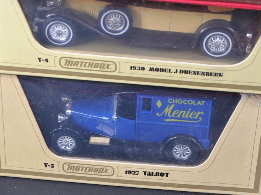 A large collection of assorted Matchbox Models of Yesteryear and Lledo Days Gone diecast model cars and other vehicles. Largely advertising related with some haulage, classic cars and public transport models present.