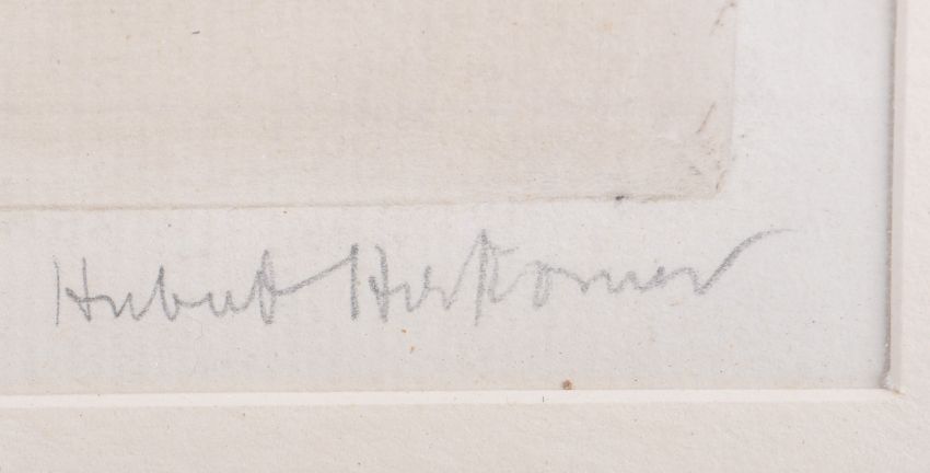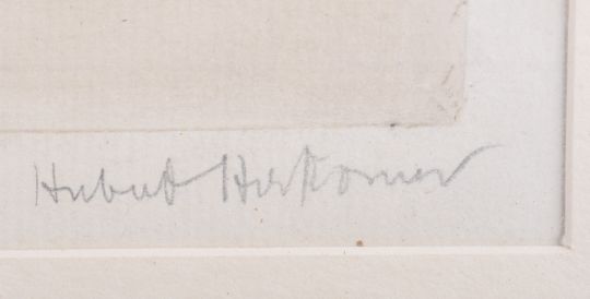 Hubert Von (sir) Herkomer (1849-1914) - A 19th Century signed monochromatic etching depicting a portrait study of young girl in dress & hat holding whip. Signed by artist to lower right corner. Measures approx; 45cm x 39cm (28cm x 22cm). Frame in need of repair.