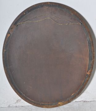 A 19th Century manner gilt framed wall mirror of oval form having a stepped frame with hand detailed scrolling leaf decoration throughout surrounding the central mirror plate. Measures approx; 75cm x 62cm
