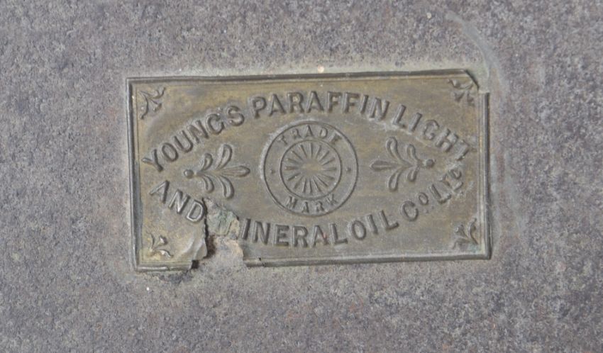 A large 19th Century Victorian oil copper porch lantern of typical street lamp light form. Shaped top with four glass panels housing the interior glass flume oil lamp.