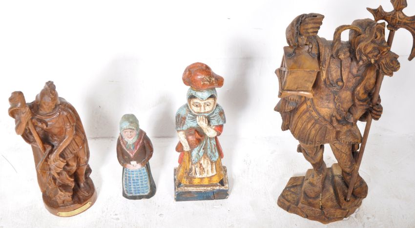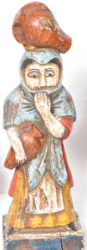 An early 20th Century Black Forest carved gatekeeper figure of medieval influence with weapon in one hand and lantern in the other. Measures approx; 57cm x 24cm.