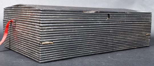 A 19th Century Anglo Indian ebonised combination writing slope having an arched rectangular reeded ebony case with fitted interior. Measures approx; 13cm x 42cm x 23cm.