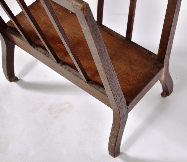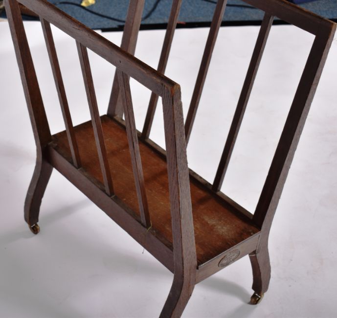 A turn of the Century Edwardian oak folio stand of simple open form having paneled sides tapering inwards creating a V-shape with all raised on shaped legs upon castors. Plaque to the side for Lechertier Barbe & Co. No signs of visible damage. Measures approx; 79cm x 61cm x 21cm.