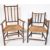 A near pair of 19th Century Victorian Arts & Crafts William & Mary manner bobbin armchairs / His & Her chairs. Each arm chair with bobbin turned oak backs, legs & supports with woven rush seats. Larger chair measures approx; 94cm x 56cm x 50cm.